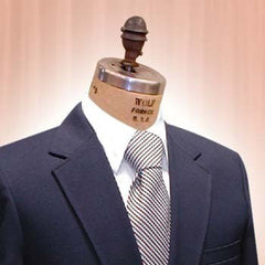 A self-assured wool navy sport coat provides the lines you need. The crisp white shirt and textured black and white pin-striped tie lend you the clout.